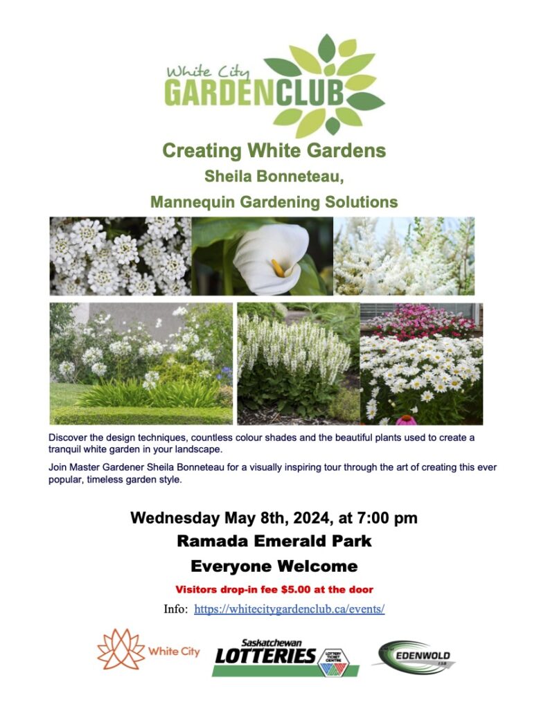 April 14, 2024 Creating White Gardens 314 314 people viewed this event. Register for event To register for this event email your details to wcgc.communications@gmail.com Register using webmail: Gmail / AOL / Yahoo / Outlook Date And Time 2024-05-08 @ 07:00 PM to 2024-05-08 @ 09:00 PM Location Ramada Emerald Park/Regina East Event Types In-person Event Category Educational Session Share With Friends Facebook Twitter Linkedin Xing Pinterest
