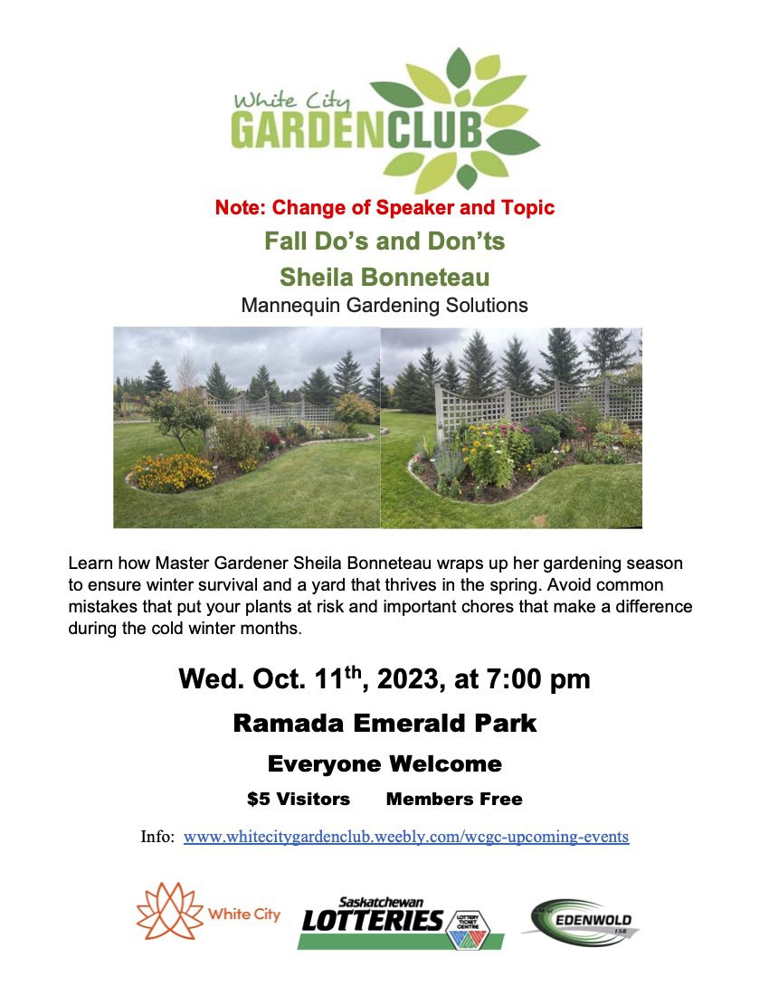 October 9, 2023 Registrations have closed. Oct. 11th Fall Do’s And Don’ts 329 329 people viewed this event. Date And Time 2023-10-11 @ 07:00 PM to 2023-10-11 @ 09:00 PM Location Ramada Emerald Park/Regina East Event Types In-person Event Category Educational Session Share With Friends Facebook Twitter Linkedin Xing Pinterest