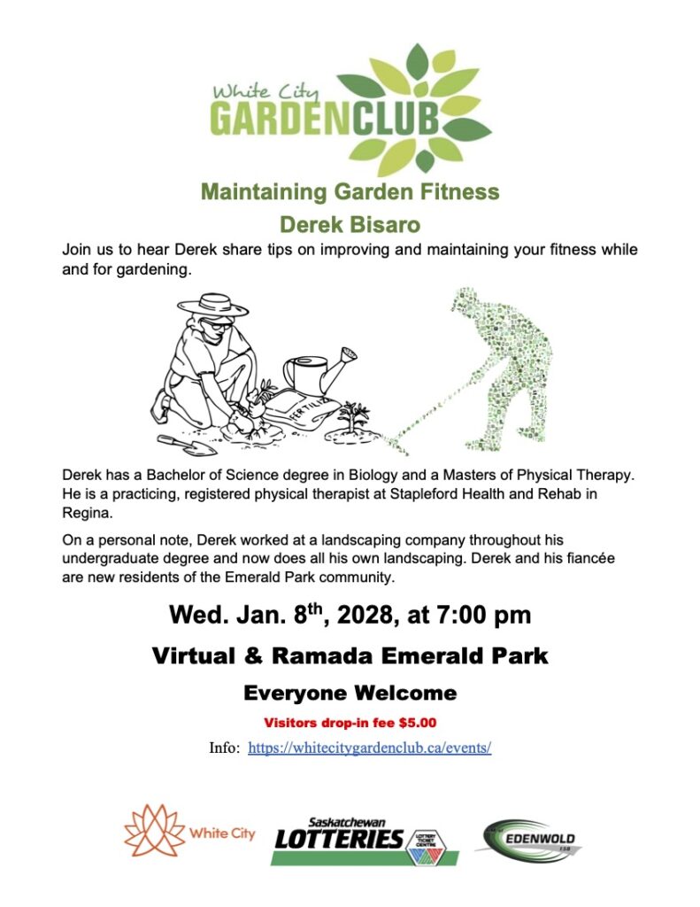 November 27, 2024 Registrations have closed. Maintaining Garden Fitness 251 251 people viewed this event. Date And Time 2025-01-08 @ 07:00 PM to 2025-01-08 @ 09:00 PM Location Ramada Emerald Park/Regina East Event Types Members & Guests Event Category Educational Session Share With Friends Facebook Twitter Linkedin Xing Pinterest